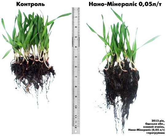 2 rep error 2013 Пізні строки посівуЧерез затяжні дощі по всіх областях України зрушилися строки сівби озимих (з 10-20 вересня на 01-15 жовтня), до того ж прогнозують дуже холодну зиму. У таких умовах рослинам для перезимівлі та нормального врожаю дуже важливо: - отримати додаткову енергію, нагромадити достатню кількість хлорофілу, ферментів та цукрів (морозостійкість); - засвоїти більше фосфору і калію для розвитоку первинної кореневої системи та забезпечення доброї морозостійкості; - збільшити кількість коренів різного порядку та їх кислото- ексудативність, завдяки чому рослини увійдуть в зиму з добре розвиненою кореневою системою, що сприятиме добрій перезимівлі. Для вирішення цього завдання фахівці ТОВ «Мінераліс Україна» рекомендують обробити насіння Нано-активатором «Нано-Мінераліс» з нормою витрати 0,05 - 0,1 л/т. Нано-Мінераліс містить десять життєво необхідних для рослин біогенних металів - Cu, Fe,Co, Mo, Mg, Mn, Zn, Ge, Se, Nd у формі нанокарбоксилатів . Переваги: - Обробка насіння мікродобривом Нано-Мінераліс забезпечує відмінний стартовий розвиток рослини, підвищує її стресостійкість та імунітет. - На ранніх етапах розвитку рослини Нано-Мінераліс збільшує кореневу системи в 3-5 разів, що в свою чергу збільшує площу живлення.